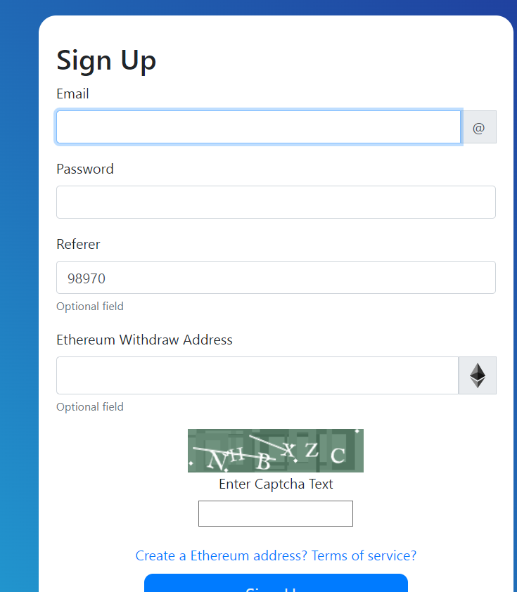 Bước 2: Đăng ký tài khoản trên Free-Ethereum.io